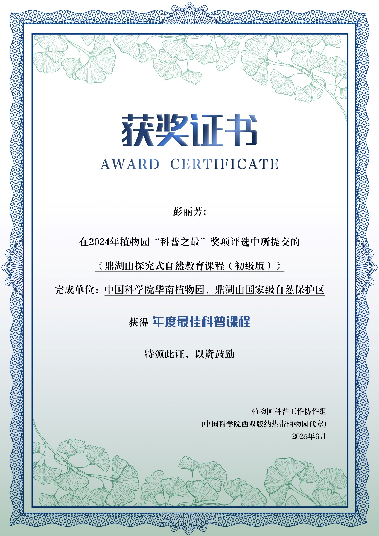 近日,由中国科学院植物园科普工作协作组主办的2024年"植物园科普之最”评选活动正式公布评选结果,鼎湖山保护区提交的作品《鼎湖山探究式自然教育课程(初级版)》荣获最佳科普课程奖。