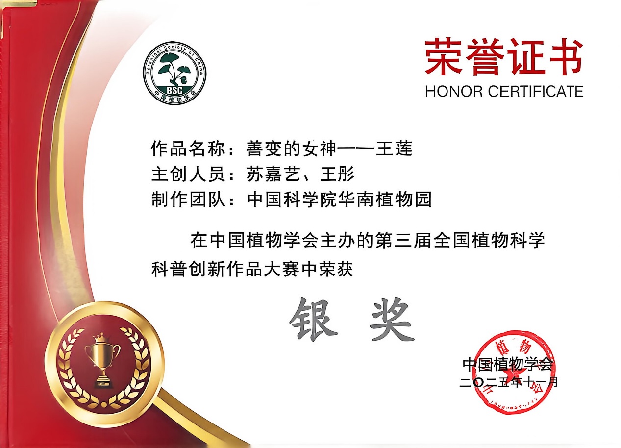 12月8日获悉,第三届全国植物科学科普创新作品大赛总结会在深圳举行。本次大赛由中国植物学会主办,吸引了来自全国各地500余位作者踊跃投稿,共征集短视频、科普文章、科学故事等各类作品180余部。经过专家评审与大众投票(线上访问量超40万次,投票量逾12万),由华南植物园园地管理处报送的两部高质量原创科普作品——《探秘华南国家植物园》和《善变的女神——王莲》,双双荣获银奖,充分展现了华南植物在植物科学普及与自然教育领域的扎实功底。