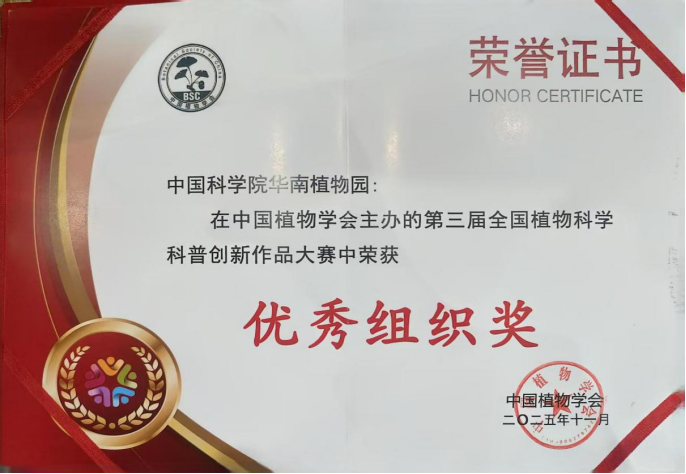 高质量的植物科普是连接科学与公众的重要桥梁。此次获奖作品,正是将前沿科研成果转化为大众可感可知的优质内容的典范,华南植物园也被授予“优秀组织单位”称号。近年来,华南植物园持续推动“科研+科普”深度融合,依托丰富的活植物收集与深厚的学术积淀,打造了一系列有温度、有深度、有广度的科普产品,未来将继续以创新为笔、以自然为纸,讲好中国植物故事。