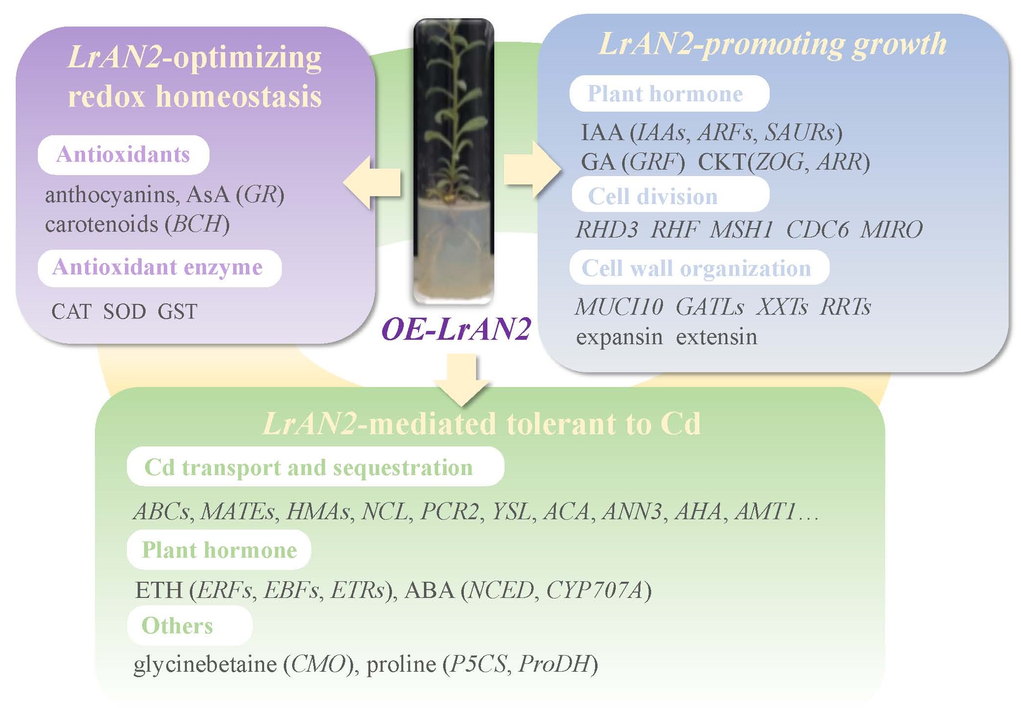 图1. LrAN2增强黑果枸杞幼苗耐镉胁迫推测模式图