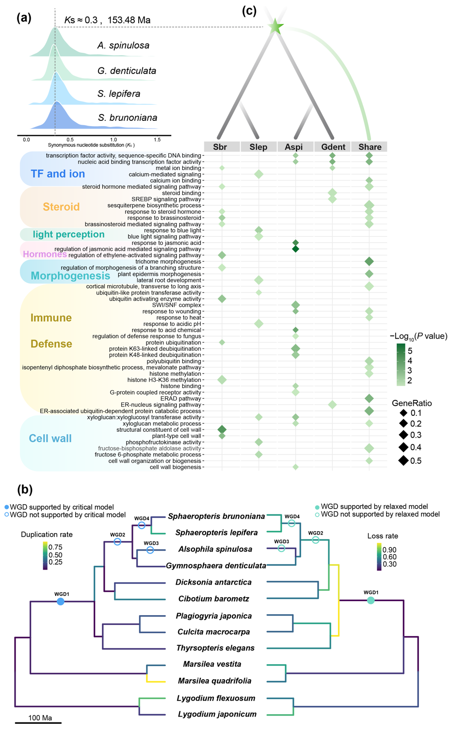 图1. 桫椤科植物的WGD事件及后续基因保留