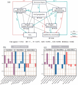 图1. 毛竹入侵程度、土壤性质以及细菌和真菌多样性对ARGs和VF相对丰度的影响