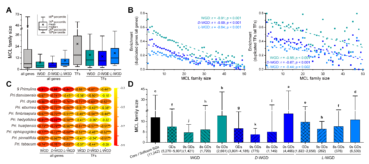 华南植物园泛基因组科研团队研究完成了7个高质量基因组组装,构建了涵盖喀斯特、丹霞及酸性土壤9个物种的报春苣苔属泛基因组,为解析土壤专化适应机制提供了关键基因组学资源。喀斯特适生物种基因组显著小于非喀斯特物种,与其LTR重复元件含量降低相关,符合基因组氮限制假说。两次谱系特异性全基因组加倍(WGD)事件显示,大基因家族呈现重复拷贝倾向于丢失,而转录因子家族成员尽管数量众多却优先保留(图1),暗示适应性与非适应性进化力量的共同作用。泛基因组分析发现,离子通道与转运蛋白基因在变异热点区域显著富集,且在喀斯特谱系中频繁受到正选择,这些候选基因与土壤贫瘠耐受性、抗旱性及肉质叶片的重复进化相关。值得注意的是,位于高影响变异热点区域的ABC转运蛋白G亚家族(ABCG)在喀斯特物种中呈现正选择信号且结构保守,而非喀斯特物种则携带特异的大型插入片段(图2,图3)。综上,基因组缩小、WGD后功能基因的偏向性滞留及离子转运通路适应性进化协同驱动了报春苣苔属植物对特殊土壤生境的适应。本研究为生态基因组学提供了土壤专化与基因组演化关联的新视角。