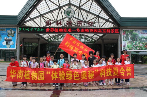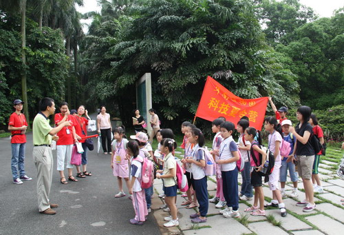 7月28日,2010年第二期“体验绿色奥秘”科技夏令营在华南植物园举行,20多位6-12岁的小朋友参加了本次活动,园艺中心执行主任廖景平博士为夏令营开营并授营旗。接下来就是小朋友们一天开心的科技之旅: