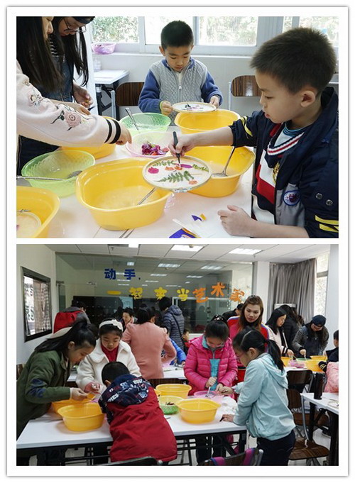 结束户外自然观察课程,老师在教室通过PPT向大家讲解纸张的起源、发展与作用,介绍传统古法造纸复杂且繁琐工艺流程,然后以现场演示方式,让大家在短时间内直观地了解、学习了造纸的步骤和草花纸的制作方法。紧接着,亲子家庭成员亲自实践,依照搅浆、浇浆、花草造型、再浇浆等步骤制作出一幅幅美丽的花草纸。