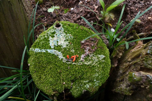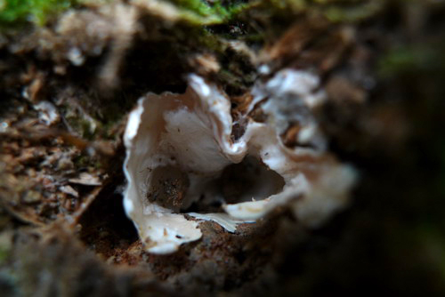 明朝李时珍《本草纲目·菜五·土菌》(附录)引陈藏器曰:“鬼笔生粪秽处。头如笔,紫色。朝生暮死,名朝生暮落花”。不知道此鬼笔是否是一代名医李时珍所说的彼鬼笔,但相似的是,此鬼笔也是朝生幕死——早晨还活灵活现,雄赳赳气昂昂的挺立,到下午就萎蔫似空皮了。至此,你也许还不明白它为什么叫“鬼笔”而不是“臭笔”或“艳笔”等等子乎者也吧?“鬼”在什么地方呢?直到第二天早晨,笔者才恍然大悟——“笔身”不见了!只留下散落的分裂开的“笔头”,神出鬼没!但再细细一看,鬼笔所着生的木桩上有些透明胶状物,并且还有些踪迹可寻,莫非?Forget it! 据判断,那应该是鼻涕虫(蛞蝓)的痕迹,难道是鼻涕虫把它给当美餐了?还是无意路过此地?这就留给您猜测了,可以给您提供的线索是:那疑似鼻涕虫踪迹的透明物,只此一个树桩上有,然后以线状消失了……