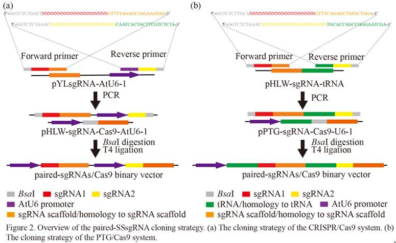 图1 成对sgRNA/Cas9双元表达载体快速构建策略