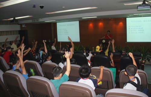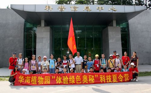 7月13日,2010年第一期“体验绿色奥秘”科技夏令营在华南植物园举行,30多位6-12岁的小朋友参加了活动。园主任助理蚁伟民在活动开始时致欢迎词并为营员授营旗。