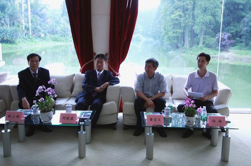 华南植物园主任黄宏文(右2)、党委书记任海(右1)与广东省政府副秘书长刘晓捷(左2)、省旅游局副巡视员林上福(左1)等座谈