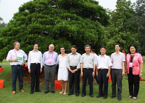 华南植物园领导与嘉宾共同植下纪念树—海芒果,并在树下合影