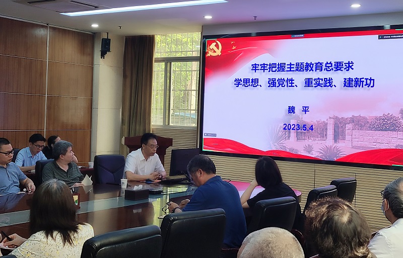 魏平对开展好主题教育提出四点要求:一要提高政治站位,凝聚思想共识。处级以上领导干部、各党支部和全体党员要提高政治站位、统一思想、凝聚共识,切实增强实现高水平科技自立自强的责任感、使命感、紧迫感。准确把握“学思想、强党性、重实践、建新功”总要求和目标任务,努力在以学铸魂、以学增智、以学正风、以学促干方面取得实实在在的成效。二要加强组织领导、落实《工作计划》。把主题教育作为一项重大政治任务抓紧抓实、抓出成效。领导小组将根据上级要求,以“四坚持、四强化”的高标准、严要求,加强组织领导,压实各方责任,注重统筹兼顾,加强宣传引导,强化纪律要求;精心组织、细化安排,在宣传、调研、整改三个方向统筹开展工作,确保主题教育取得预期效果。三要坚持学思用贯通、知信行统一。聚焦“学什么,怎么学”,对标对表习近平总书记关于科技创新重要论述和对中科院工作的重要指示批示精神,“读原著、学原文、悟原理”,全面学习领会习近平新时代中国特色社会主义思想,全面系统掌握这一思想的基本观点、科学体系,把握好这一思想的世界观、方法论,坚持好、运用好贯穿其中的立场观点方法,不断增进对党的创新理论的政治认同、思想认同、理论认同、情感认同,自觉用习近平新时代中国特色社会主义思想指导各项工作。四要开展调查研究,着力推动解决问题。直面高水平建设华南国家植物园面临的问题,领导班子成员结合分管工作,围绕“落实指示批示精神、人才队伍建设、提升管理效能、党建与业务工作深度融合、弘扬科学家精神和创新文化建设”6个方面开展调研。通过调研,把脉问诊、解剖麻雀,梳理问题、用党的创新理论研究、解决问题。