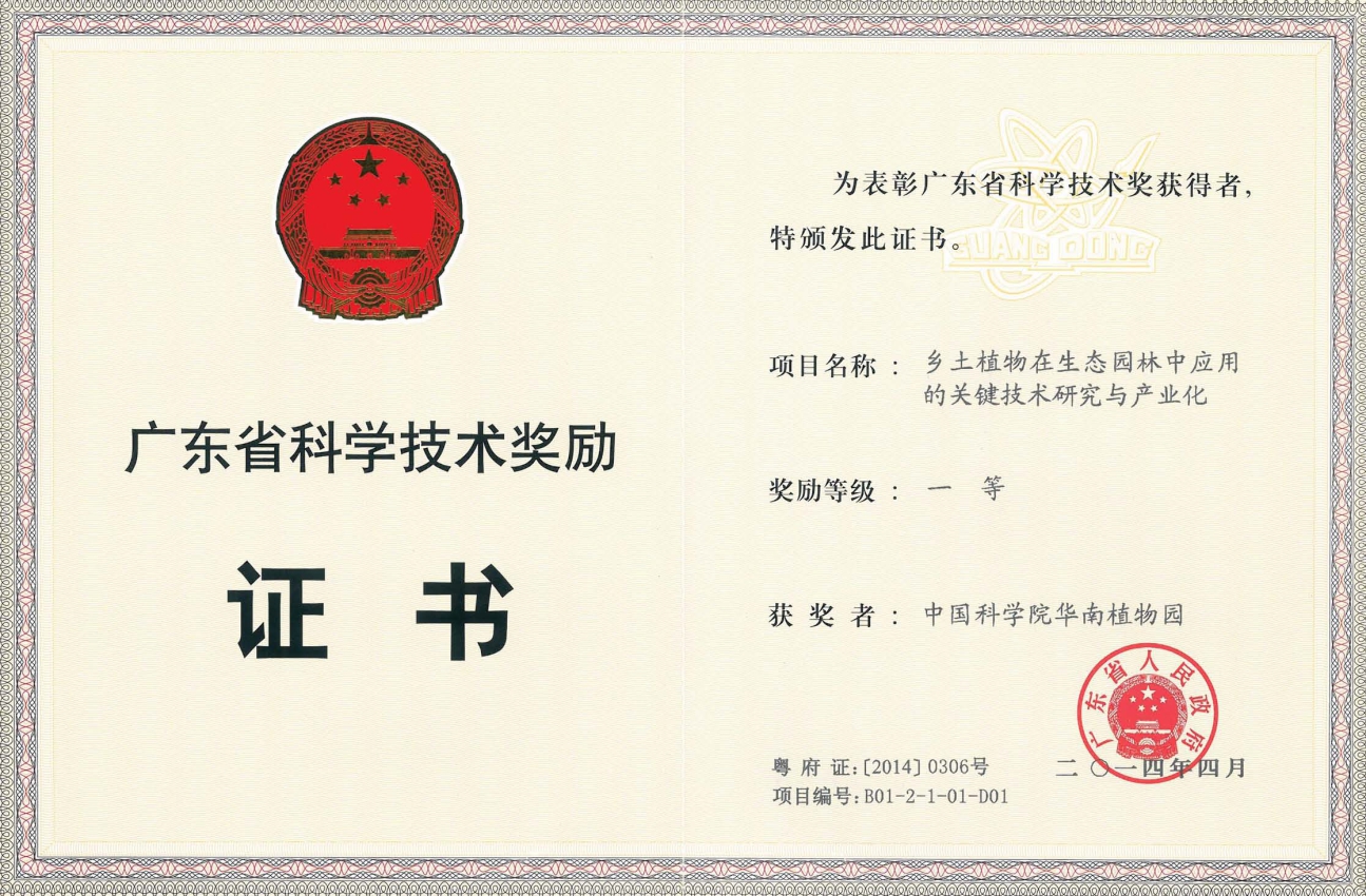 2013年度广东省科学技术一等奖:乡土植物在生态园林中应用的关键技术研究与产业化