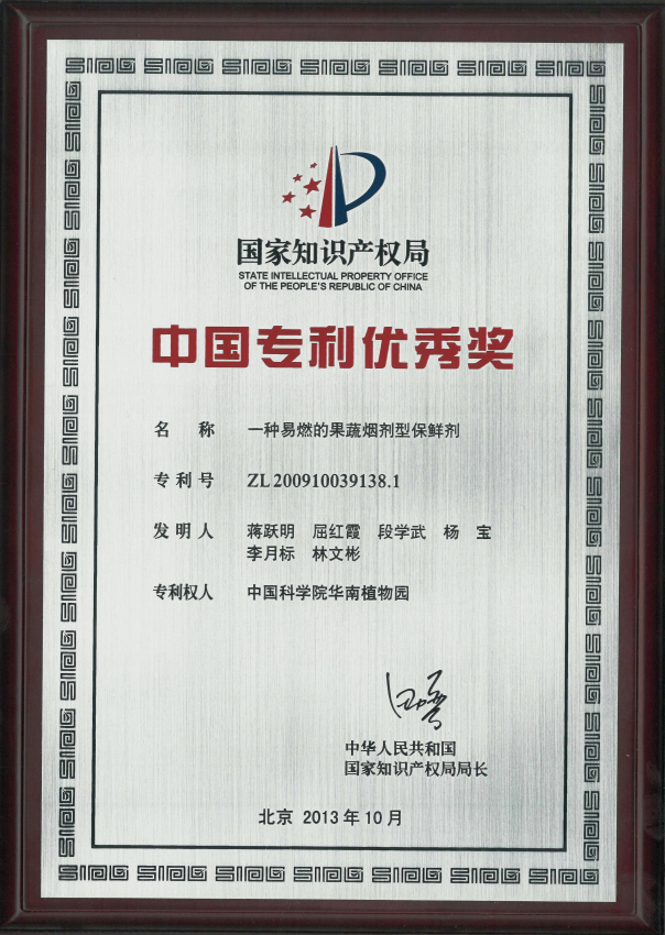 2013年度中国专利优秀奖:一种易燃的果蔬烟剂型保鲜剂