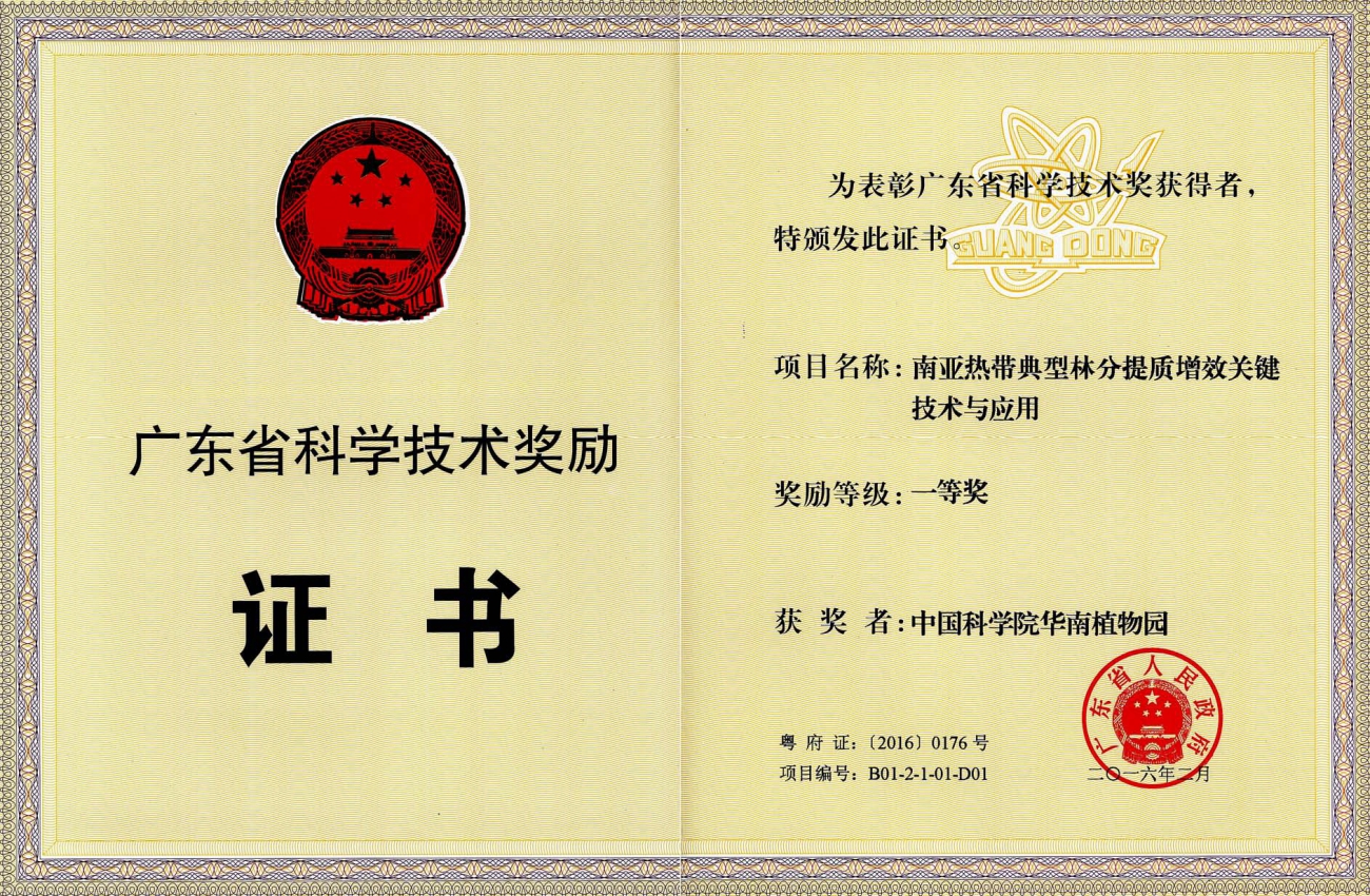 2015年度广东省科学技术一等奖:南亚热带典型林分提质增效关键技术与应用