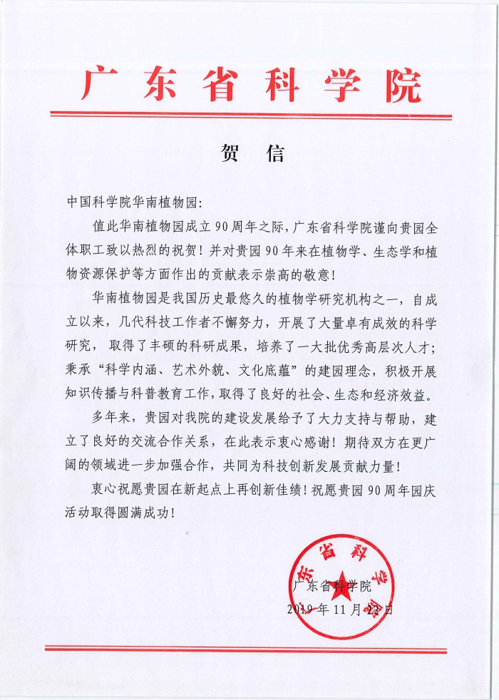 广东省科学院发来贺信