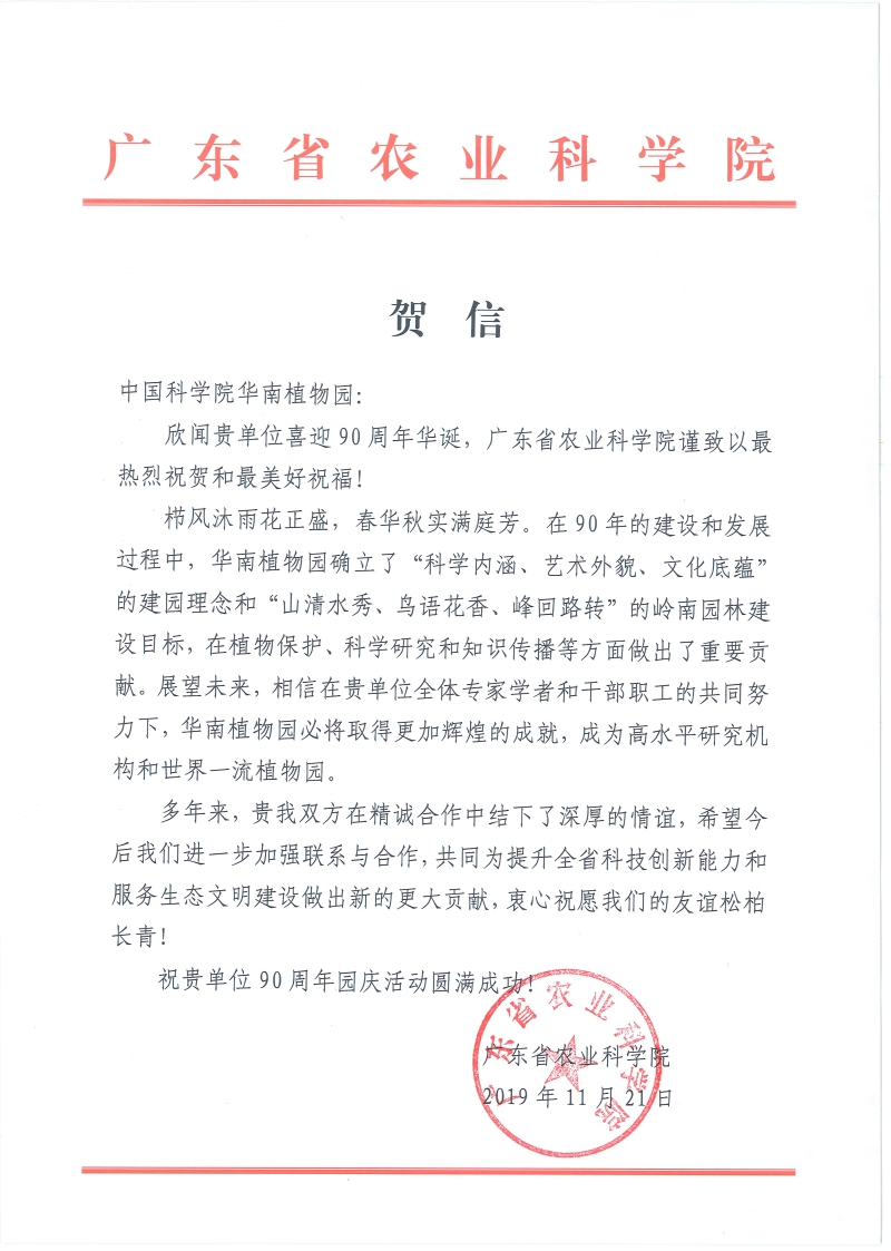 广东省农业科学院发来贺信