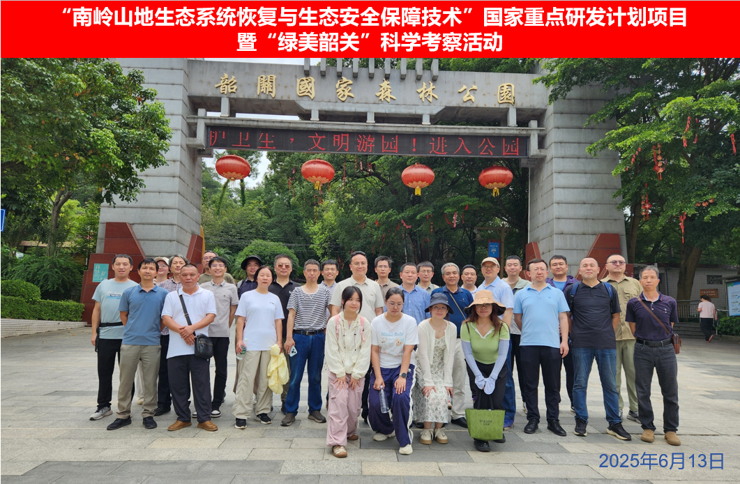 为扎实推进“十四五”国家重点研发计划项目——“南岭山地生态系统恢复与生态安全保障技术”顺利实施,助力绿美韶关生态建设,2025年6月12-13日,中国科学院华南植物园牵头,联合中南林业科技大学、中山大学、中国林业科学研究院热带林业研究所、生态环境部华南环境科学研究所、广东省科学院动物研究所、广东省科学院生态环境与土壤研究所、韶关市林业局、韶关市林业科学研究所、始兴县林业局、南岭生态系统与生物多样性研究院(韶关)等单位,在韶关组织开展国家重点研发计划项目暨绿美韶关科学考察活动。本次活动通过实地调研、专题研讨等形式,聚焦南岭山地生态系统恢复与生态安全保障技术,为韶关绿色高质量发展提供科技支撑。