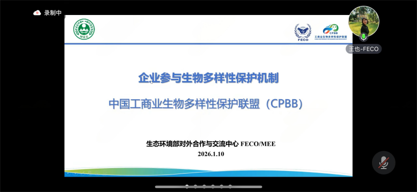 生态环境部南京环境科学研究所的刘燕研究员梳理了《生物多样性公约》下科技合作机制的发展脉络与网络布局。为响应发展中国家技术需求,公约建立了由全球协调实体与18个区域支持中心构成的合作网络,打造一站式数字化知识服务平台,推动技术转移与能力建设,为实施“昆蒙框架”提供了有力科技支撑。生态环境部对外合作与交流中心王也副处长阐述了中国工商业生物多样性保护联盟(CPBB)的成立背景与运作机制。该联盟旨在响应《生物多样性公约》倡议,构建由政府引导、行业推动、企业实践、全民参与的协同治理格局,通过指导委员会、战略成员等多方协作,推动重点行业企业将生物多样性保护深度融入运营管理,是多元主体共治的创新实践。