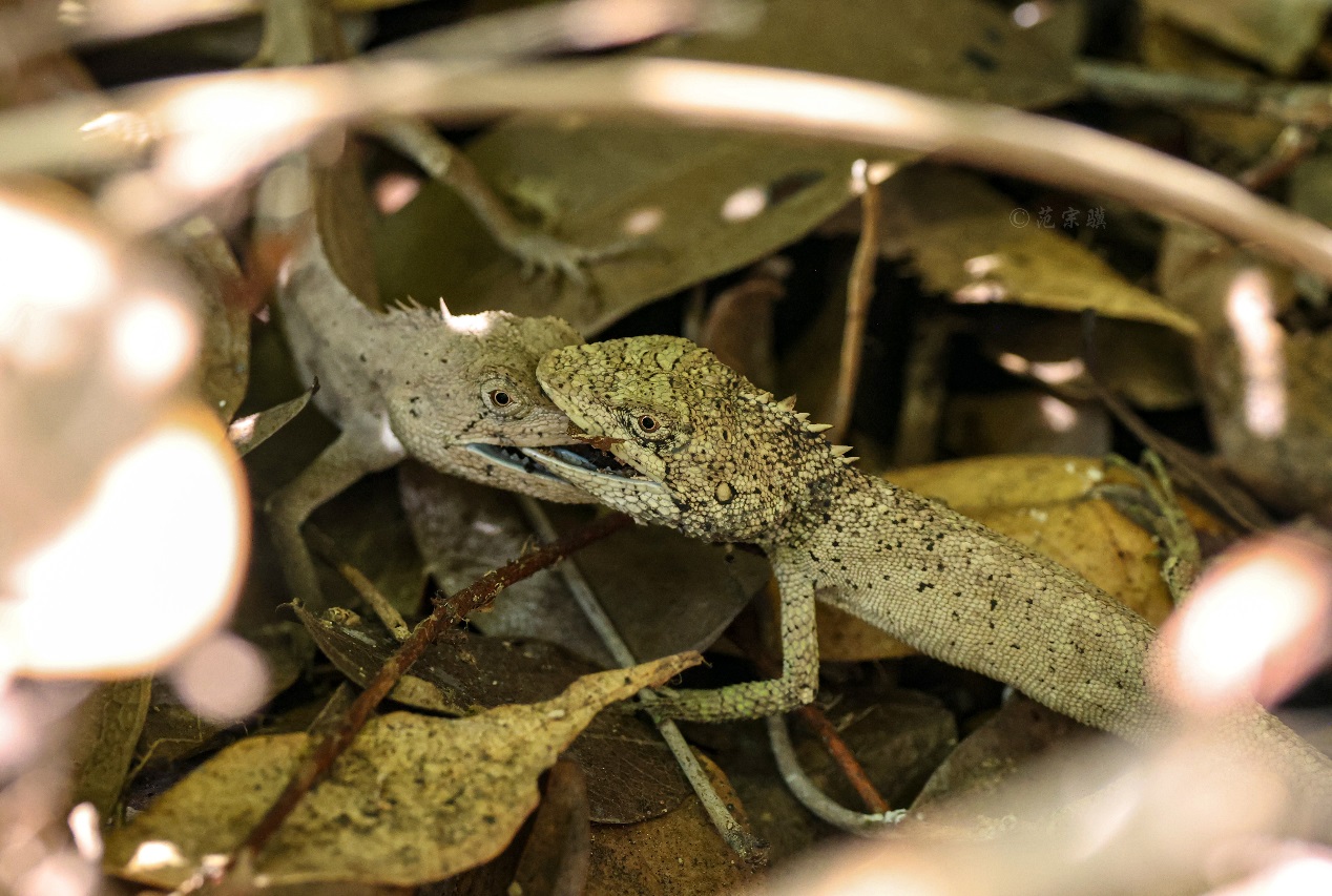 图2. 两只正在争斗的细鳞拟树蜥(范宗骥 摄)