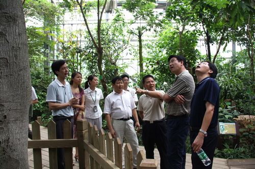 随后,督查组在任海陪同下重点考察了展览温室群。督查组认真察看了热带雨林温室、沙漠植物室、高山、极地植物室的建设及科普设施,高度赞扬了景观温室的景观布局、植物生境模拟及科普展示,并就如何更好发挥温室群景区开展科普素质教育等问题与陪同人员进行了交流和探讨。