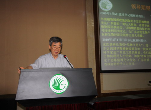 会议由郭俊主持。华南植物园主任黄宏文首先作届中述职报告,他全面回顾了本届领导班子任职以来,该园在科研进展与产出、人才引进和队伍建设、经济收支与财务状况、资源储备及迁地保育、院地共建项目验收、科普教育与旅游开放、党建及精神文明建设等各方面工作的进展情况,并就华南植物园的发展态势及存在的问题进行了剖析和说明。他还简要介绍了华南植物园制定并实施“十二五”规划,以及部署中科院“创新2020”的战略构想。