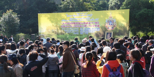 12月4日,由泰国驻广州总领事馆主办、中国科学院华南植物园协办的“庆祝泰国国王84岁华诞植树活动”在华南植物园隆重举行。泰国驻广州总领事馆全体官员、泰国在穗企业家与知名人士、泰国诗丽吉王后植物园的专家、部分泰国在穗留学生以及其他社会各界人士400余人出席,华南植物园主任黄宏文、党委书记任海及部分职工代表参加了活动。
