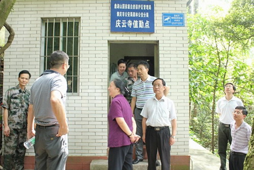 座谈会后,方新一行考察了保护区的试验区和缓冲区的植被和科研设施,专程到保护区庆云寺执勤点亲切慰问了管护执勤人员,管护员们受到了极大的鼓舞,表示一定不辜负领导期望,努力工作,做好保护工作。