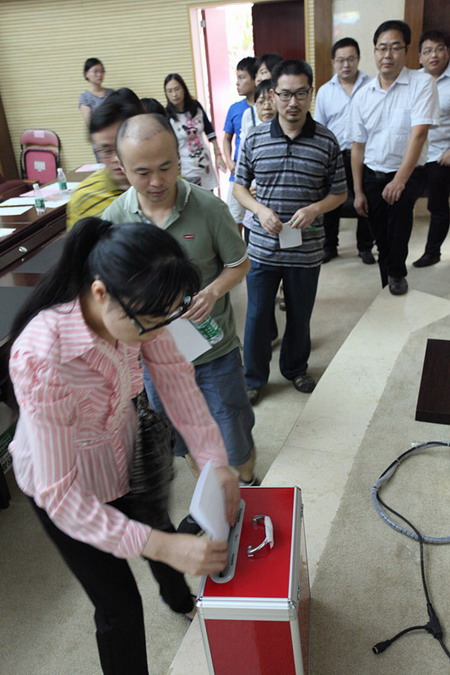 广州分院副院长张福生宣读了《关于中国科学院华南植物园第七届党委纪委候选人的批复》。大会通过无记名投票、差额选举的方式,选举产生了华南植物园第七届委员会和纪律检查委员会。按得票的多少为序,当选的党委委员为任海、周国逸、魏平、夏汉平、黄宏文、范德权、廖景平,当选的纪委委员为魏平、王瑞江、闫俊华、陈振焕、龚晓萍。