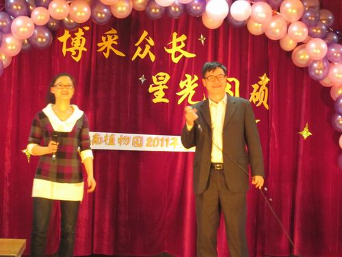 12月28日,以“‘博’采众长,星光闪‘硕’”为主题的华南植物园2011年元旦晚会在研究生公寓多功能厅举行。华南植物园党委书记任海、副主任傅声雷,主任助理夏汉平、闫俊华等职工与导师代表,以及全体研究生共逾400余人参加了晚会。广东省昆虫研究所副所长邹发生和昆虫所师生代表也应邀到场观看了演出。会场里装饰一新,布置了新年祝福、心语星愿等许愿墙,充满了热烈的节日氛围。