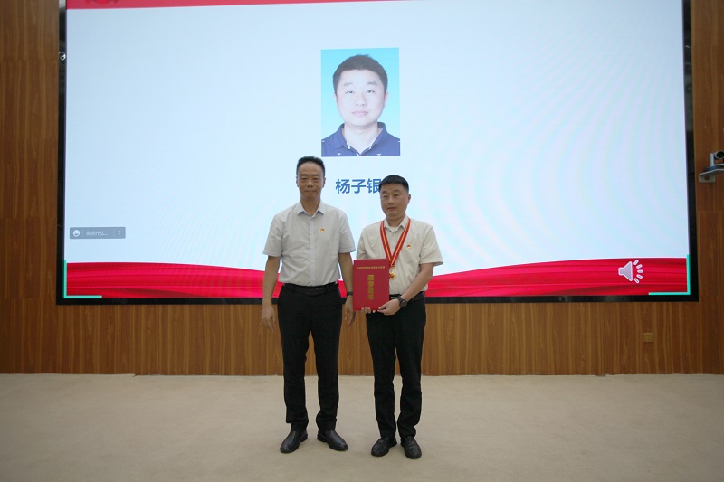 魏平为中国科学院优秀党务工作者杨子银同志颁发荣誉证书及奖章