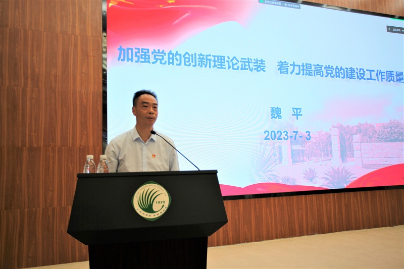会上,魏平作题为《加强党的创新理论武装 着力提高党的建设工作质量》的专题报告。报告传达学习了2023年中国科学院党的建设工作会议主要精神,重点介绍了中国科学院院长、党组书记侯建国报告——《认真落实党的建设总要求,为加快全面实现四个率先目标提供坚强保证》主要内容,以及副院长、党组副书记阴和俊,党组成员、秘书长李和风关于传达学习贯彻院党的建设工作会议精神、扎实推进主题教育工作走深走实的工作要求。报告通报了一年来华南植物园党的建设工作进展、工作成效与存在问题和不足,对贯彻落实中央决策部署和院党组工作要求,以及下半年党建工作重点提出了明确要求。魏平强调,今年是华南植物园系统谋划《华南国家植物园实施方案》、重点实验室重组等中心工作的关键一年,华南植物园将按照院党组聚焦布局、重塑队伍、提升效能总体思路,以高标准推进华南国家植物园建设为抓手,坚持用习近平新时代中国特色社会主义思想武装头脑、指导实践、推动工作,牢牢把握主题教育总要求,扎实完成好主题教育工作各项任务,进一步强化国家战略科技力量主力军职责使命,进一步增强党组织的政治功能和组织功能,充分发挥两个作用,以高质量党建促进华南植物园实现高质量发展。