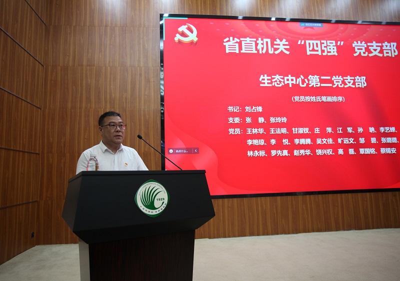 大会在庄严的《中华人民共和国国歌》声中拉开帷幕。在鲜红的党旗下,党委委员杨子银带领新党员向党旗庄严宣誓。会议表彰了荣获省直机关“四强”党支部的生态中心第二党支部,颁发了“光荣在党50年”纪念章。新党员代表张玲玲在发言中表示,成为一名正式的中共党员是成长的新起点,承诺要把入党誓词作为终生追求、终生修养和终生实践。生态中心第二党支部书记刘占锋表示,荣获“四强党支部”既是鞭策,也是新动力,将带领党支部全体党员不忘初心,牢记使命,加强党建引领,持续推进党建和科研业务深度融合,为落实抢占科技制高点目标任务、推进高水平华南国家植物园建设贡献智慧力量。