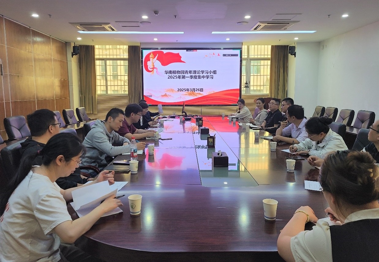 3月26日,华南植物园青年理论学习小组召开2025年第一季度学习研讨会,开展理论学习并讨论部署本年度调研课题。青年理论学习小组组长杨子银及组员共16人参加会议,会议由分组长冯超主持。