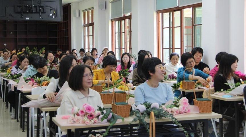 3月下旬,以“用心用情 温暖守护”为主题开展了艺术插花及健身活动。3月21日,组织园女职工开展了艺术插花活动。在课程中,大家初步掌握了花材识别、色彩搭配、造型技巧等花艺知识。经过巧心构思、细心修剪、精心制作,创作出一件件造型独特、富有创意的花艺作品。活动现场温馨融洽、笑语不断,到处春意盎然,花香四溢。大家与花相伴,不仅享受了创作的愉悦,还放松了心情。插花活动结束后,在温室大草坪开展了八段锦现场教学。活动特别邀请了国家级社会体育指导员进行现场指导。大家了解了八段锦的养生功效,学习了“双手托天理三焦”“左右开弓似射雕”“调理脾胃须单举”等八段锦的经典动作,掌握了呼吸配合与力道掌控的要点。女职工们认真地学习每一个动作,舒展筋骨、放松心情,在早春暖阳中感受传统健身功法的独特魅力。