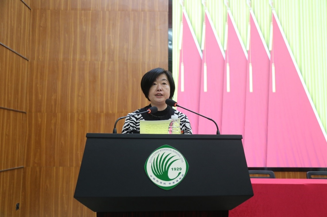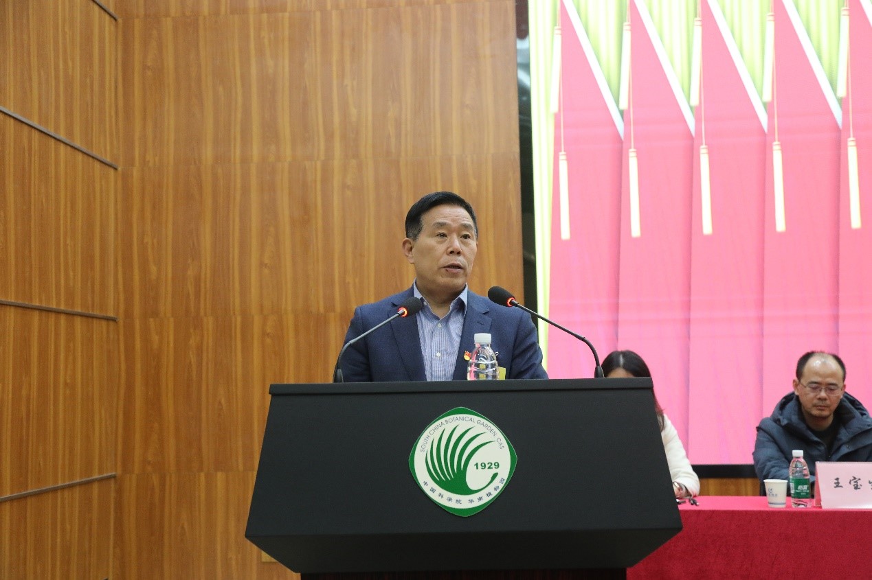 闫俊华代表新一届党委、纪委发言。他表示,第九届党委和纪委将以习近平新时代中国特色社会主义思想为指导,在上级党组织的坚强领导下,团结带领全园职工,推动华南植物园各项事业实现新发展,早日建成“中国特色、世界一流、万物和谐”的华南国家植物园,为科技强国建设贡献更大力量。