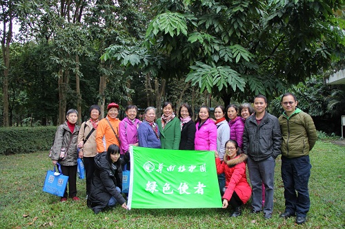 华南植物园志愿者服务队成立于2008年,分为“老年环保”、“鸟类和植物导赏”、“园林园艺”、“假日服务”等几个组。几年来先后有3000多名志愿者参加了园内的各项志愿服务工作,他们奉献的不仅仅是简单的服务,同时也向社会昭示着一种奉献、友爱、互助、进步的志愿精神。
