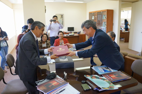 4月24日至5月14日,由中科院华南植物园主任黄宏文研究员率葛学军、夏念和、余艳等4人组成代表团访问秘鲁国立圣马科斯大学。圣马科斯大学于1551年建校,是秘鲁最有名的高等学府及美洲历史上第一所大学。黄宏文主任与圣马科斯大学校长 Pedro A. Cotillo Zegarra、主管科研副校长Bernardian Bautista及自然历史博物馆馆长Betty Millan博士等分别进行了会谈交流,双方就开展生物多样性领域合作进行了探讨磋商并达成了共识。