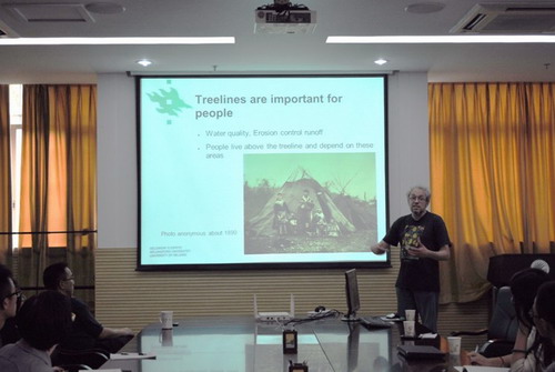 4月6日下午,Frank Berninger教授作了题为“What limits the growth at the alpine / boreal treeline”的学术报告,阐述了关于什么是树线、树线树木生长限制的因素以及交互式限制假说等问题,并与参会研究人员及学生进行了学术交流与探讨。