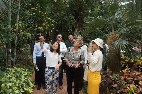 访问期间,达尔齐尔一行参观了展览温室群及部分专类园区。来宾们对华南植物园种类繁多的植物和优美的景观设计表示了高度赞赏。参观途中,华南植物园还赠送了达尔齐尔市长《Plants of China》一书。