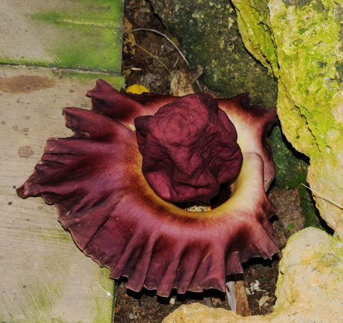疣柄魔芋(Amorphophallus virosus)为天南星科魔芋属的植物,“疣柄”二字取自它有“疣”突的花序柄和叶柄,“魔芋”则是跟随家族的传统称呼。它还有个不讨人喜欢的名字--尸花,源于它开花时腐尸般的臭味,此味道让它无法成为受宠的家庭观赏植物。其实被封称“尸花”也够冤枉它的,因为它只不过会在花开后短短的几个小时内才会发出让人难以忍受的恶臭而已。