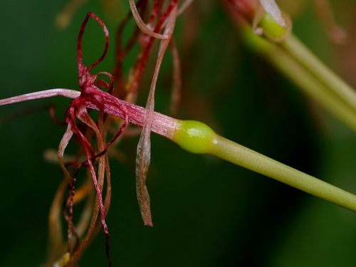 网球花(Haemanthus multiflorus),别名火球花、网球石蒜,是石蒜科(Amaryllidaceae)网球花属多年生草本球根花卉。在我国常见的同属“兄弟”还有虎耳兰(Haemanthus albiflorsu)、绣球百合(Haemanthus katharine)等,都具有很高的观赏价值。网球花具有扁平球状鳞茎,春末随着温度上升,叶子从鳞茎上部的短茎抽出,条形。当叶片达4-5片时便抽生花柱,花柱下面有淡绿色的佛焰苞。球状伞形花序顶生,上面有几十至上百朵花序组成,花为鲜红色,雄蕊长于花被,花药黄色,看去四射如球。每年只开花一次,花期集中5-7月,一个花球只能持续l0天左右,花谢后结圆形浆果。