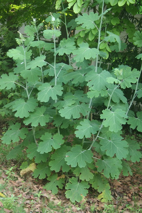 博落回(Macleaya cordata (Willd.)R.Br.)又名号筒树、三钱三等,是罂粟科博落回属多年生草本。茎高1~4米,中空,绿色,有时带红紫色,带有白粉,折断后有黄汁流出。单叶互生,叶圆心脏形,边缘浅分裂,裂片有粗齿,叶背面呈白色。大型圆锥花序顶生和腋生,多花;萼片白色有时带红色,无花瓣,雄蕊多数,雌蕊1枚。花后结长椭圆形的扁蒴果。花果期6-11月。