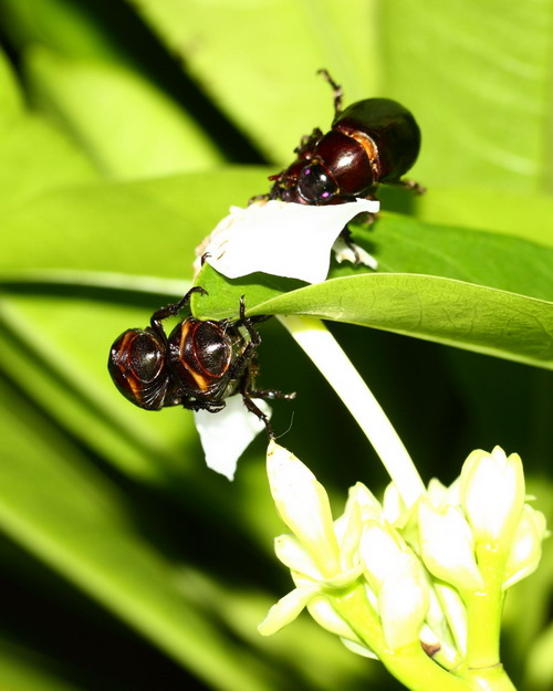 五月的夜晚,海杧果满树花开时,是金龟子们的好时光,满树忙碌的金龟子们在花上面吃饱喝足,顺便结婚生子,不亦乐乎。