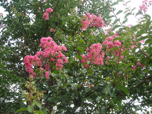 紫薇树姿优美,树干光滑洁净,花色艳丽;开花时正当夏秋少花季节,花期极长,由6月可开至9月,故有“百日红”之称,又有“盛夏绿遮眼,此花红满堂”的赞语,是观花、观干、观根的优良盆景。