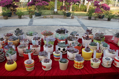 在2014年元旦来临之际,华南植物园特举办“荟萃园艺景天专题展”,展出两年来从国内外精心收集和繁育的景天植物。本次展览分12区8类别布展,集23个属、11个杂交属共1800品种和种类;其中石莲花类超过1000个、长寿花55个、水泡30个、莲花掌类60个、青锁龙类130个、仙女杯类19个、景天属类90个、长生草60个,其中有不少难得一见的品种。欢迎广大景天控们和多肉爱好者前来参观鉴赏,交流交换无任欢迎!