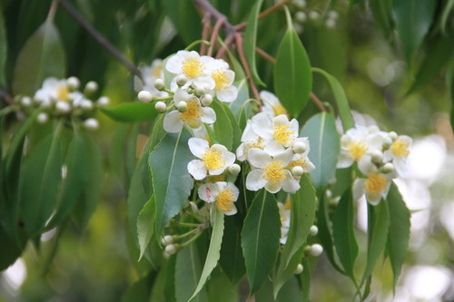 漫步山茶园,您一定会被那个绿树成荫、朵朵白色的小花挂满枝头的植物所吸引,她的名字叫木荷。