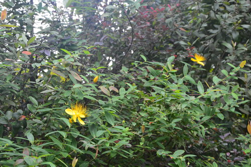 金丝桃(Hypericum monogynum L.)为金丝桃科植物,半常绿小乔木或灌木。地上每年生长季末枯萎,地下为多年生,小枝纤细且多分枝,叶纸质,无柄,对生,长椭圆形,花期5—8月,果期8—9月。金丝桃花呈5瓣,不但花色金黄,且其呈束状纤细的雄蕊花丝如同金丝,十分惹人喜爱,因为它在阳光下呈明亮纯粹的金黄色,又被称作金线蝴蝶、金丝海棠。