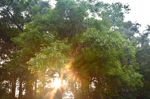 漫步于山茶园路口,您可以看到树上开着花似一串串小绿珍珠的乌桕。