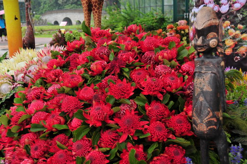 对于帝王花,还有一个非常有趣现象,其有男女之分的,在众多的帝王花丛中,你完全可以从它的外形判断出其是男是女。但凡“帝王”、“公爵”、“王子”等具有雄性称谓的花朵,其苞片则完全打开,花朵扁平,显示了其外向霸气的风格。而“皇后”、“皇妃”“公主”“夫人”等具有雌性称谓的花朵相对修长,苞片通常半闭,并且花心和苞片通常被一些颜色各异的绒毛,就像披上绣有貂皮的外衣,彰显了其含蓄而高贵的品质。