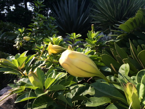 初秋的广州,虽午后不减炎热但也能感受早晚的凉风习习,让人感觉甚是舒爽。漫步在沙漠植物室外围,有一种高调的大喇叭花开得欢快热烈,让人无法忽视它的存在,它就是金杯花。